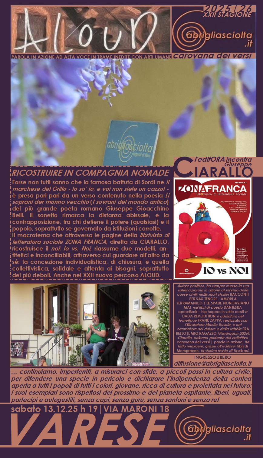 SABATO 25 E DOMENICA 26 GIUGNO 2022 abrigliasciolta torna tra i pavoni di Villa Annoni con due colonne portanti de CAROVANA DEI VERSI |PAROLA IN AZIONE GIUSEPPE CIARALLO & IACOPO NINNI